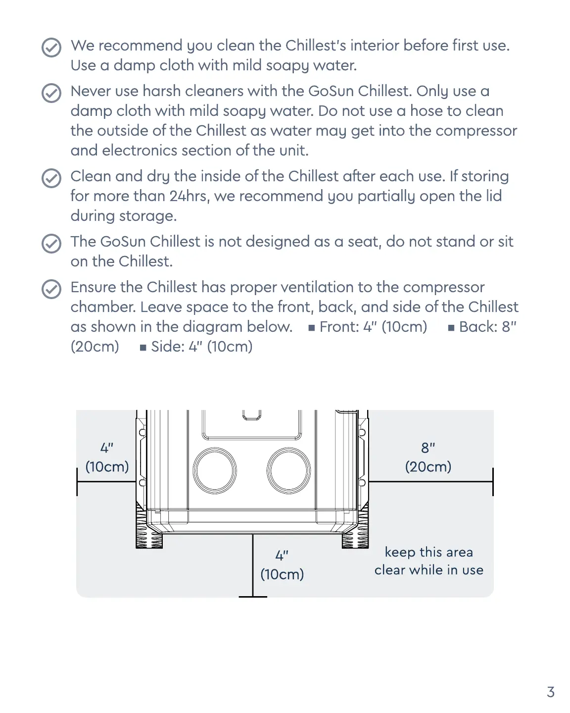 chamber. Leave space to the front, back, and side of the Chillest