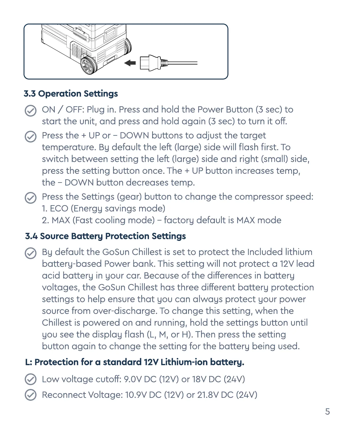 Low voltage cutoff: 9.0V DC (12V) or 18V DC (24V