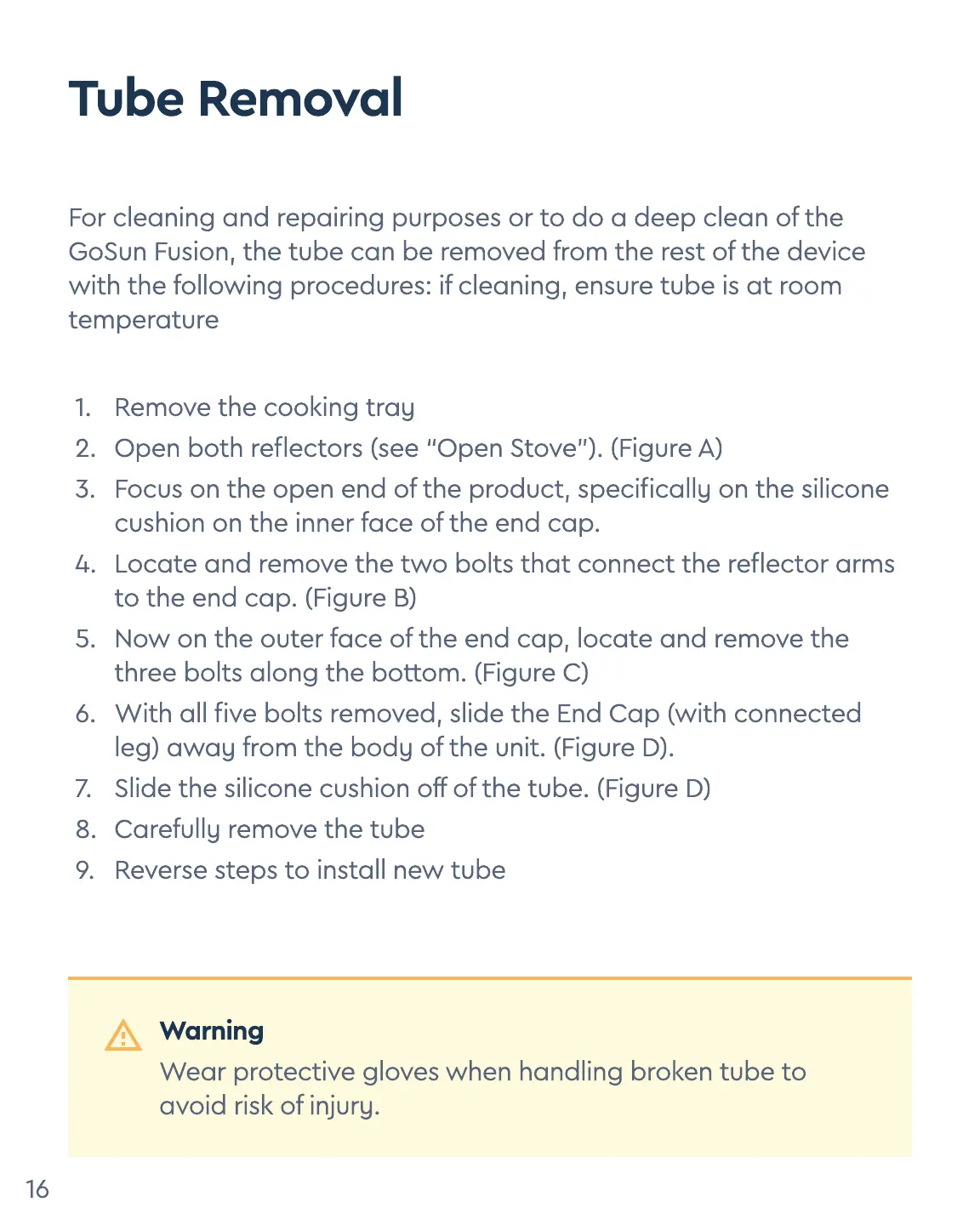 Wear protective gloves when handling broken tube to