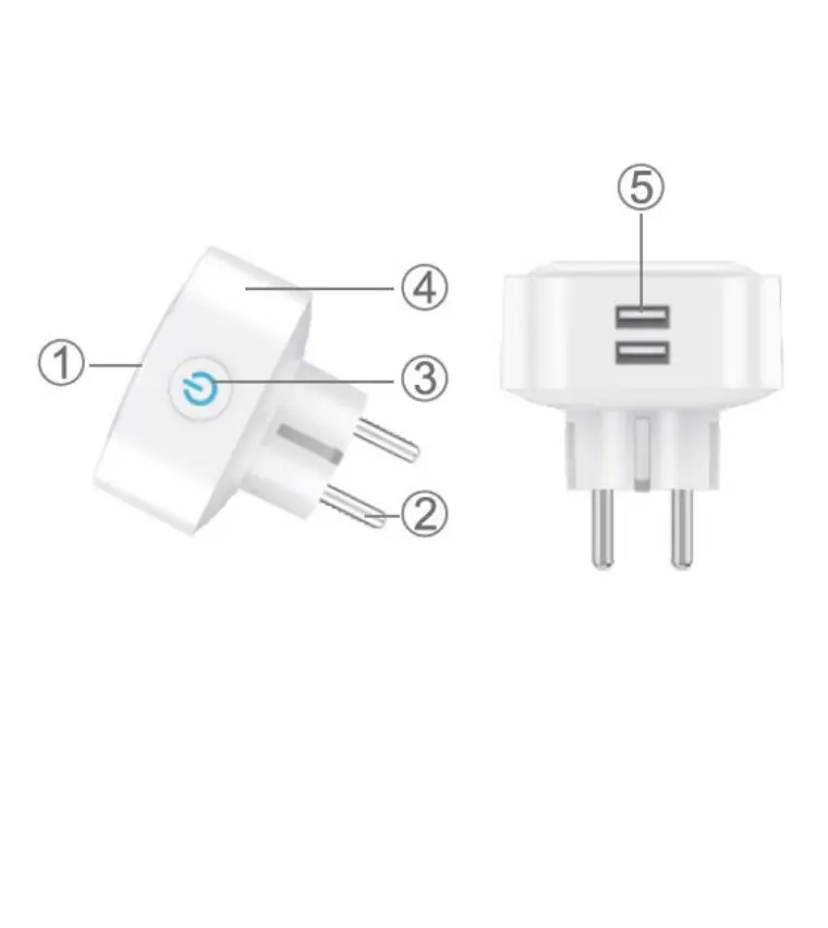 gosund SP112 - Product Components Overview; Main Socket Interface; Power Connection Plug; Manual Control Button