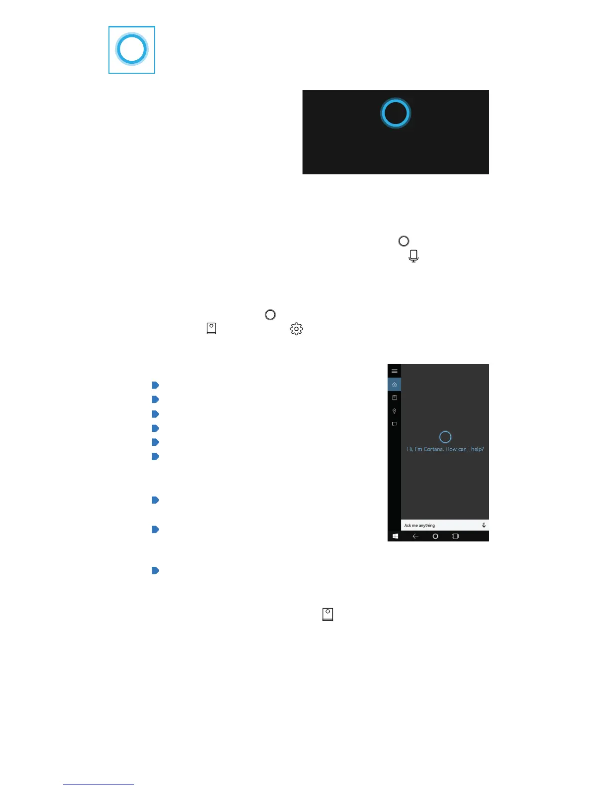 Get started with Cortana Tap the Cortana Tile or icon (or tap the