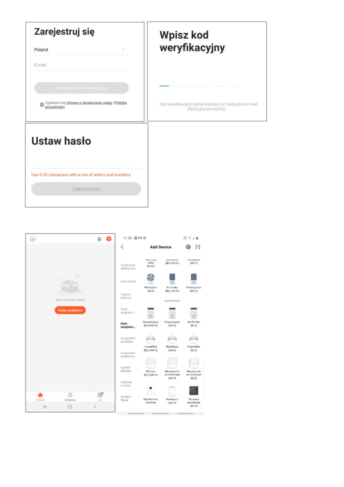 6. Dodaj ręcznie z listy odpowiednie urządzenie do skonfigurowania (Małe urządzenie -> Odwilżacz WIFI).