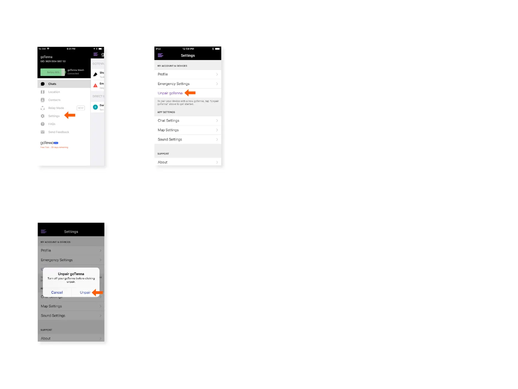 Select ‘Unpair goTenna’.