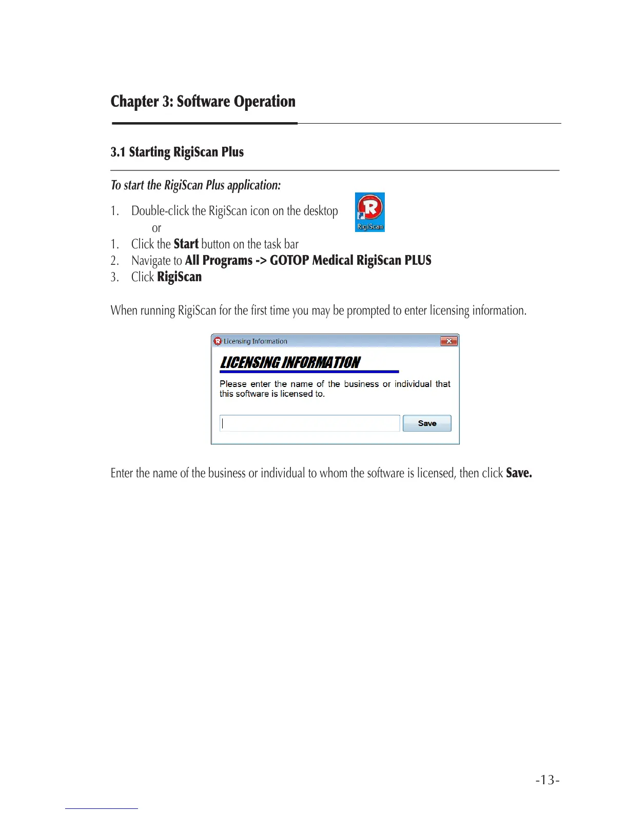 When running RigiScan for the rst time you may be prompted to enter licensing information.