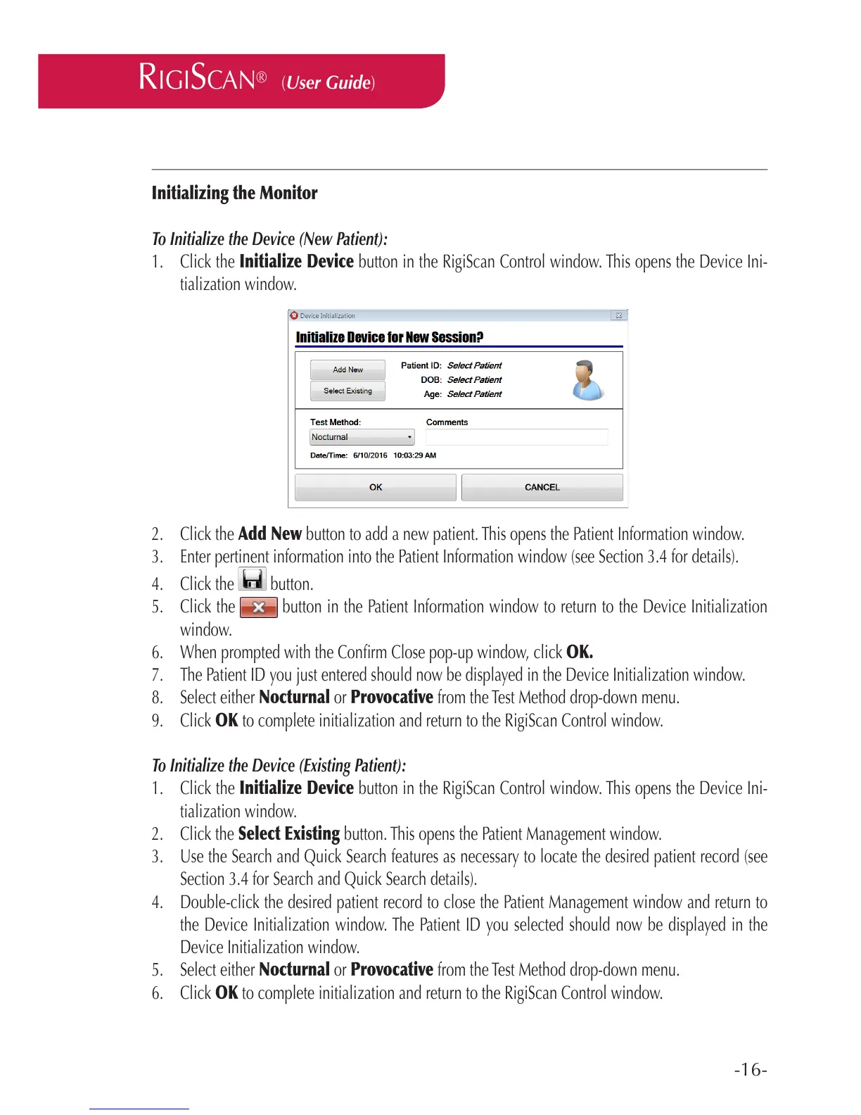 To Initialize the Device (New Patient):