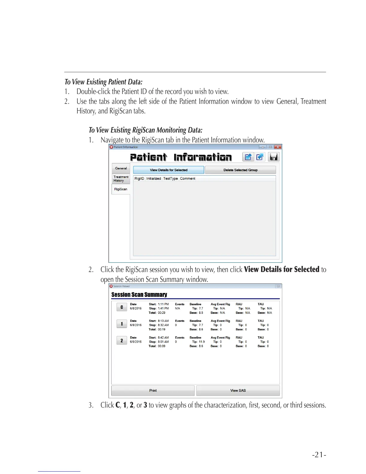 2. Click the RigiScan session you wish to view, then click View Details for Selected to