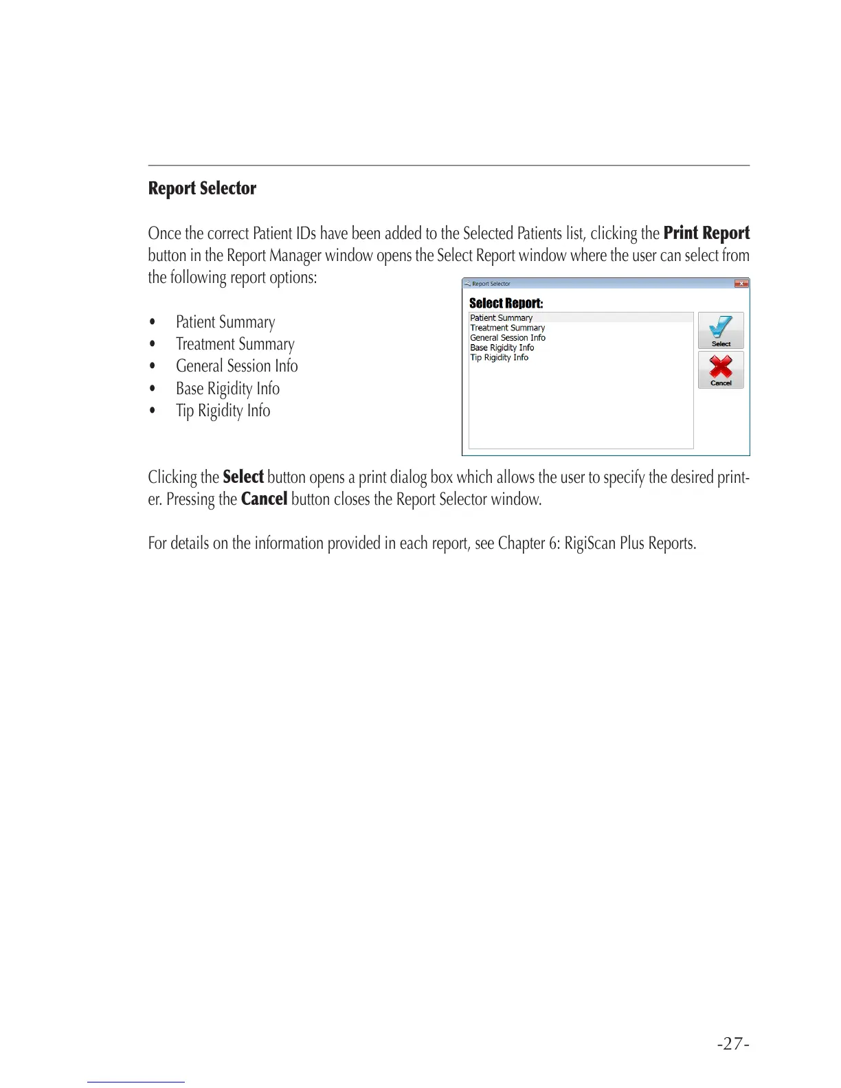 button in the Report Manager window opens the Select Report window where the user can select from