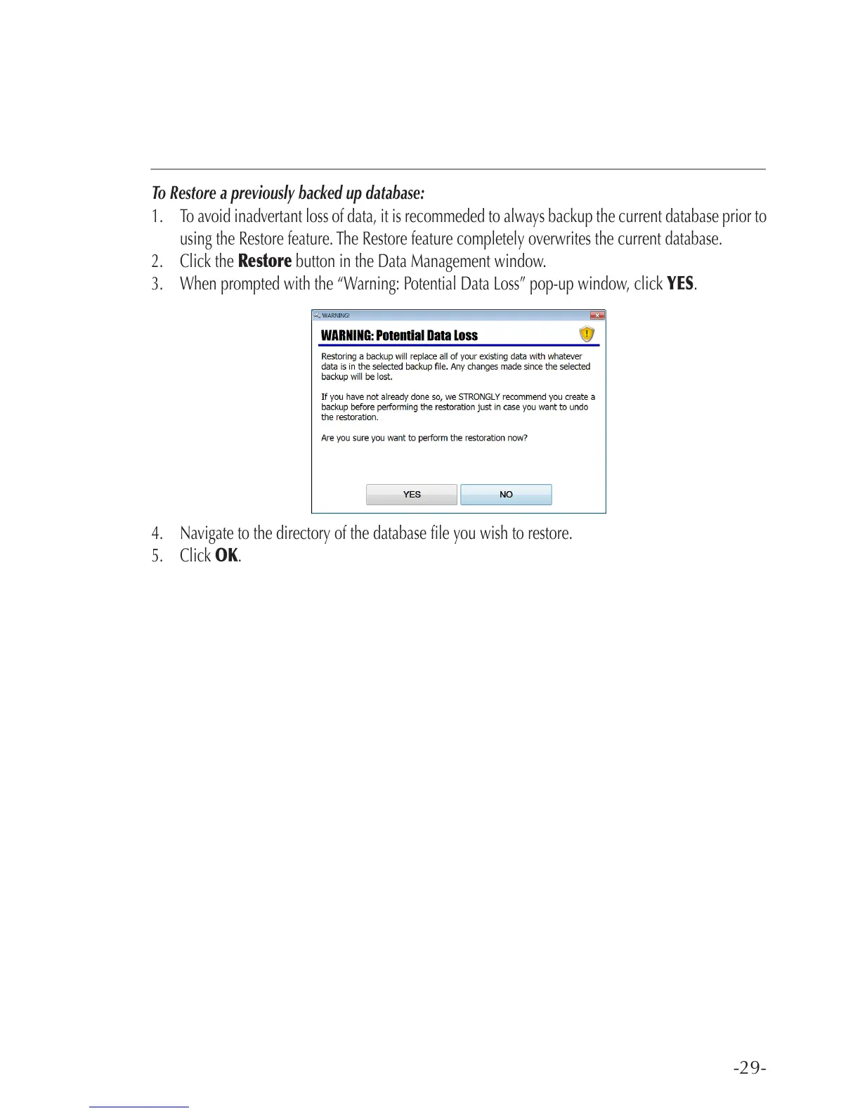 1. To avoid inadvertant loss of data, it is recommeded to always backup the current database prior to