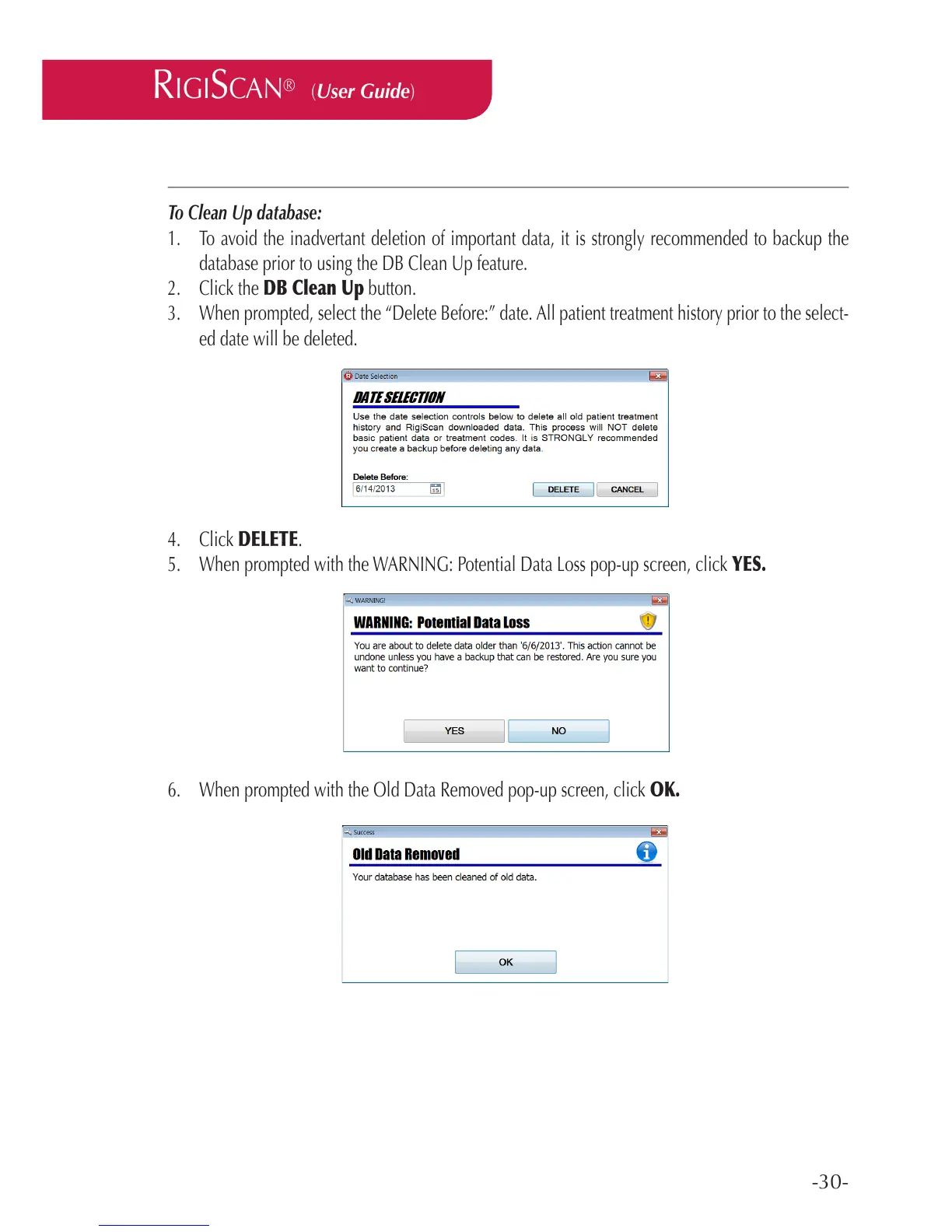 3. When prompted, select the “Delete Before:” date. All patient treatment history prior to the select-