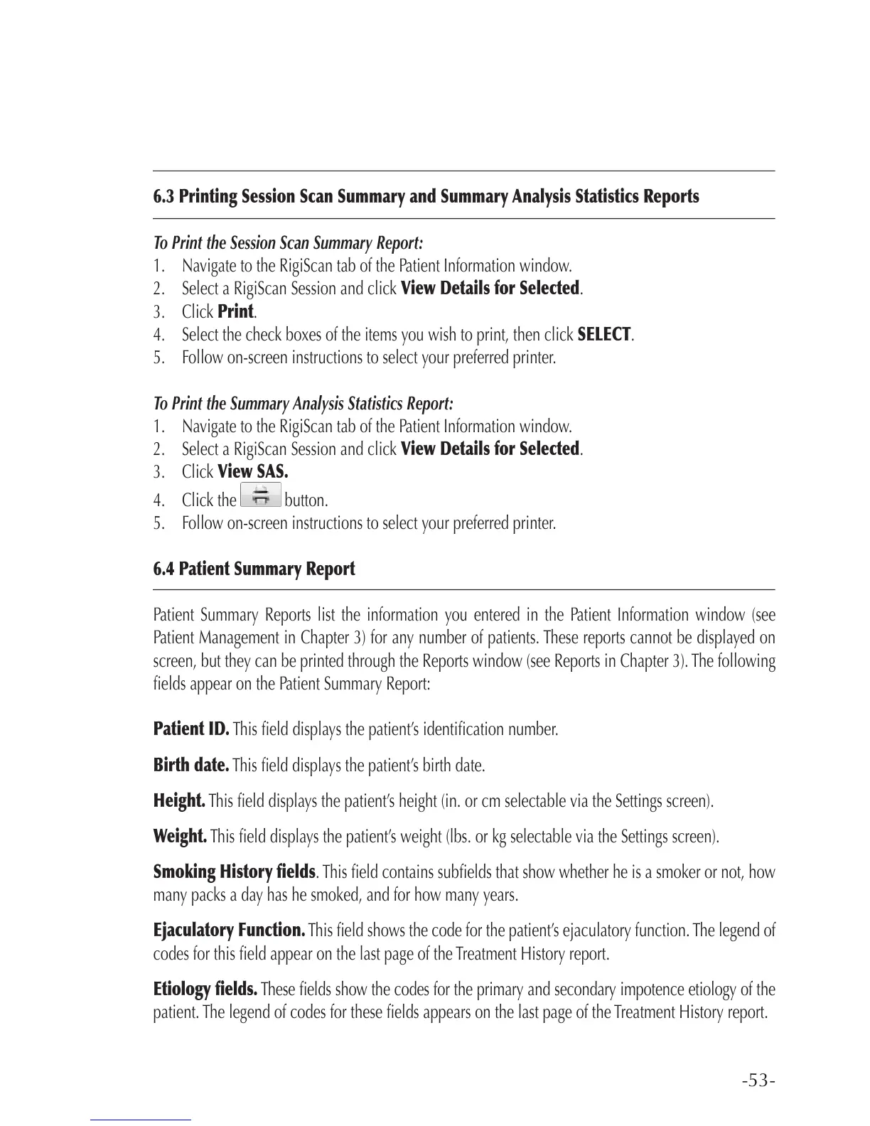 Patient Summary Reports list the information you entered in the Patient Information window (see
