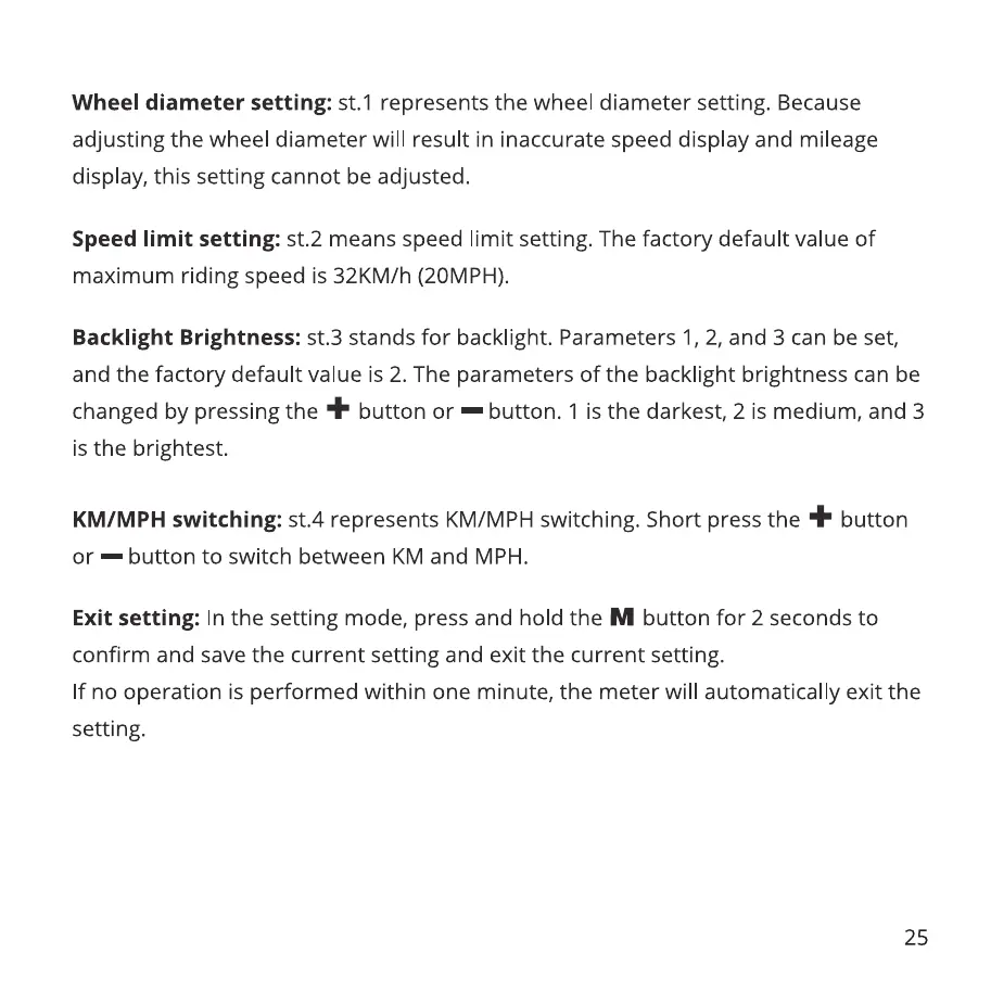 Wheel diameter setting: St.1 represents the wheel diameter setting. Because