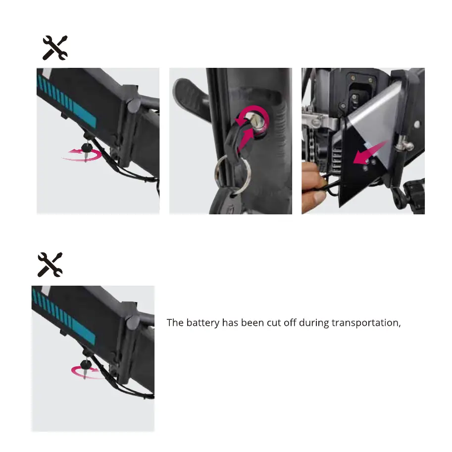 please turn the key clockwise to turn on the battery