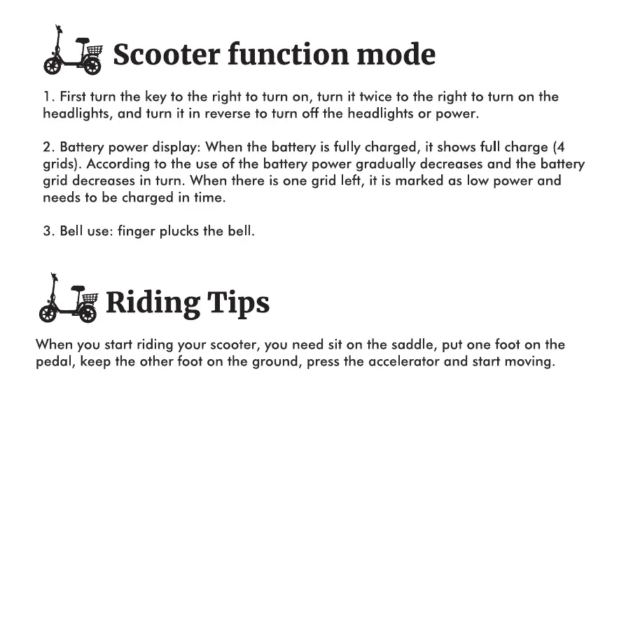 When you start riding your scooter, you need sit on the saddle, put one foot on the