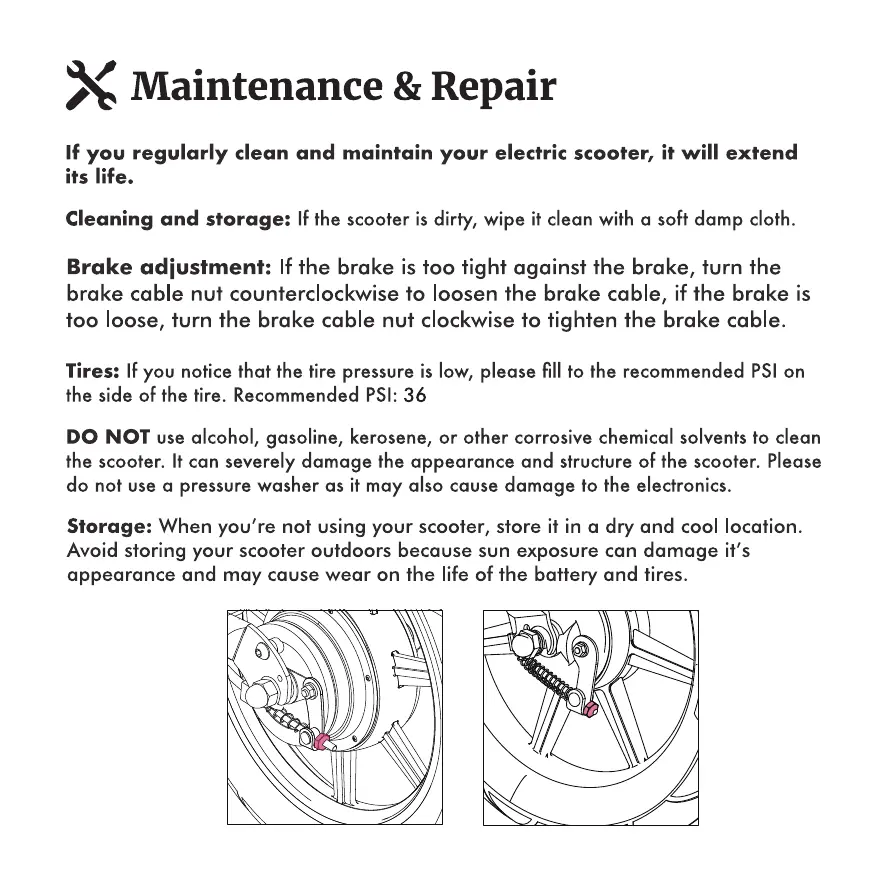 Storage: When you're not using your scooter, store it in a dry and cool location.