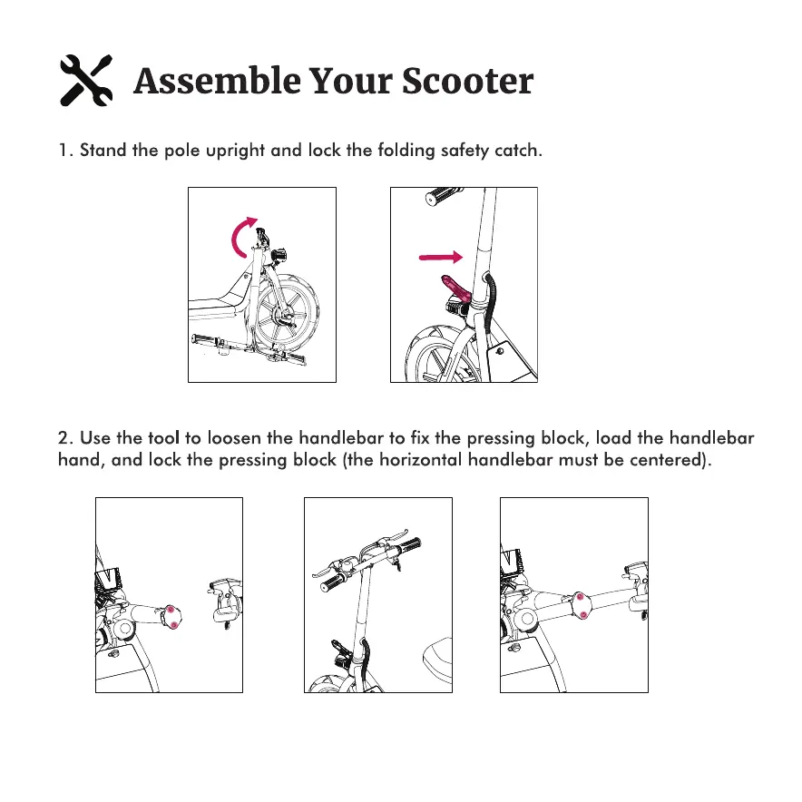 hand, and lock the pressing block (the horizontal handlebar must be centered).