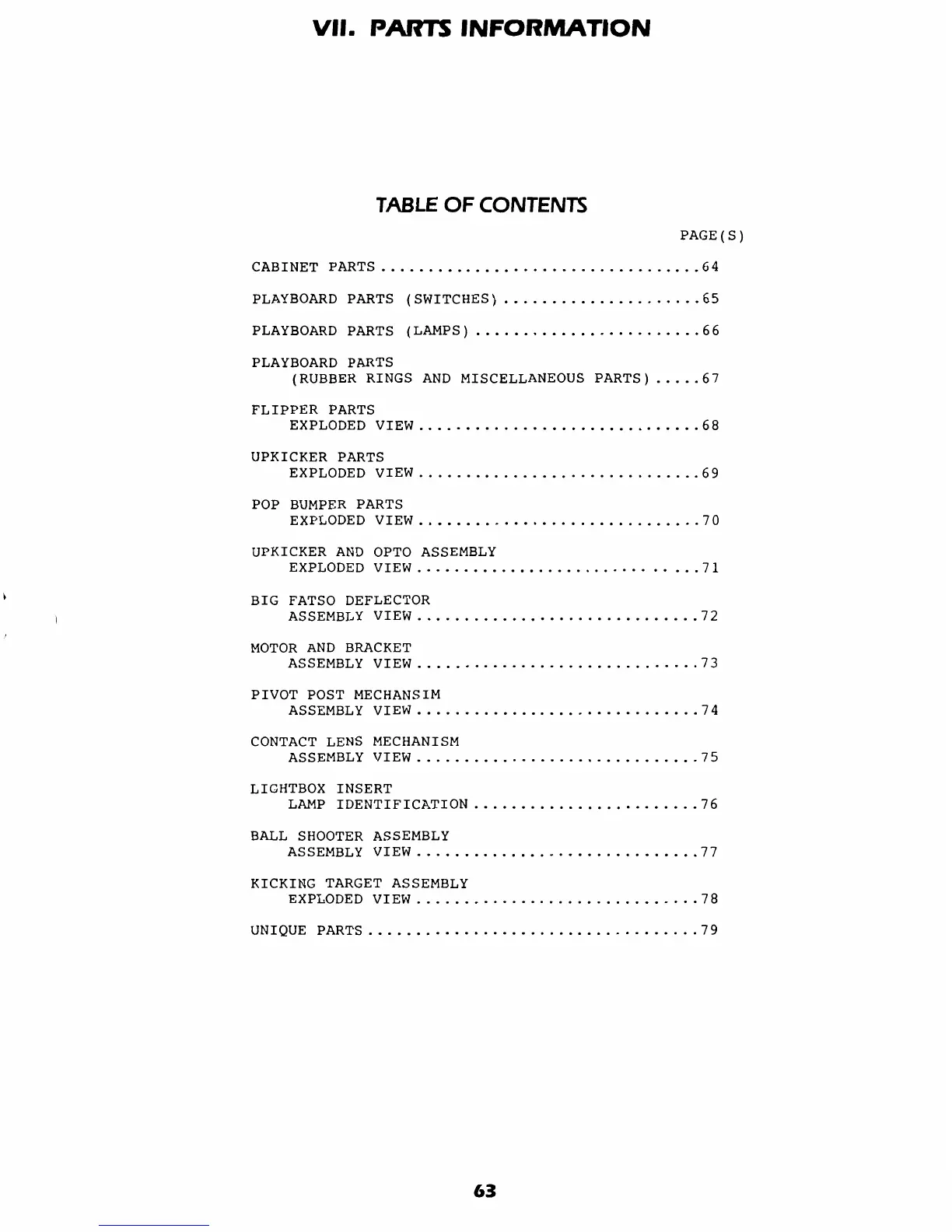 Gottlieb Barb Wire - VII. PARTS INFORMATION