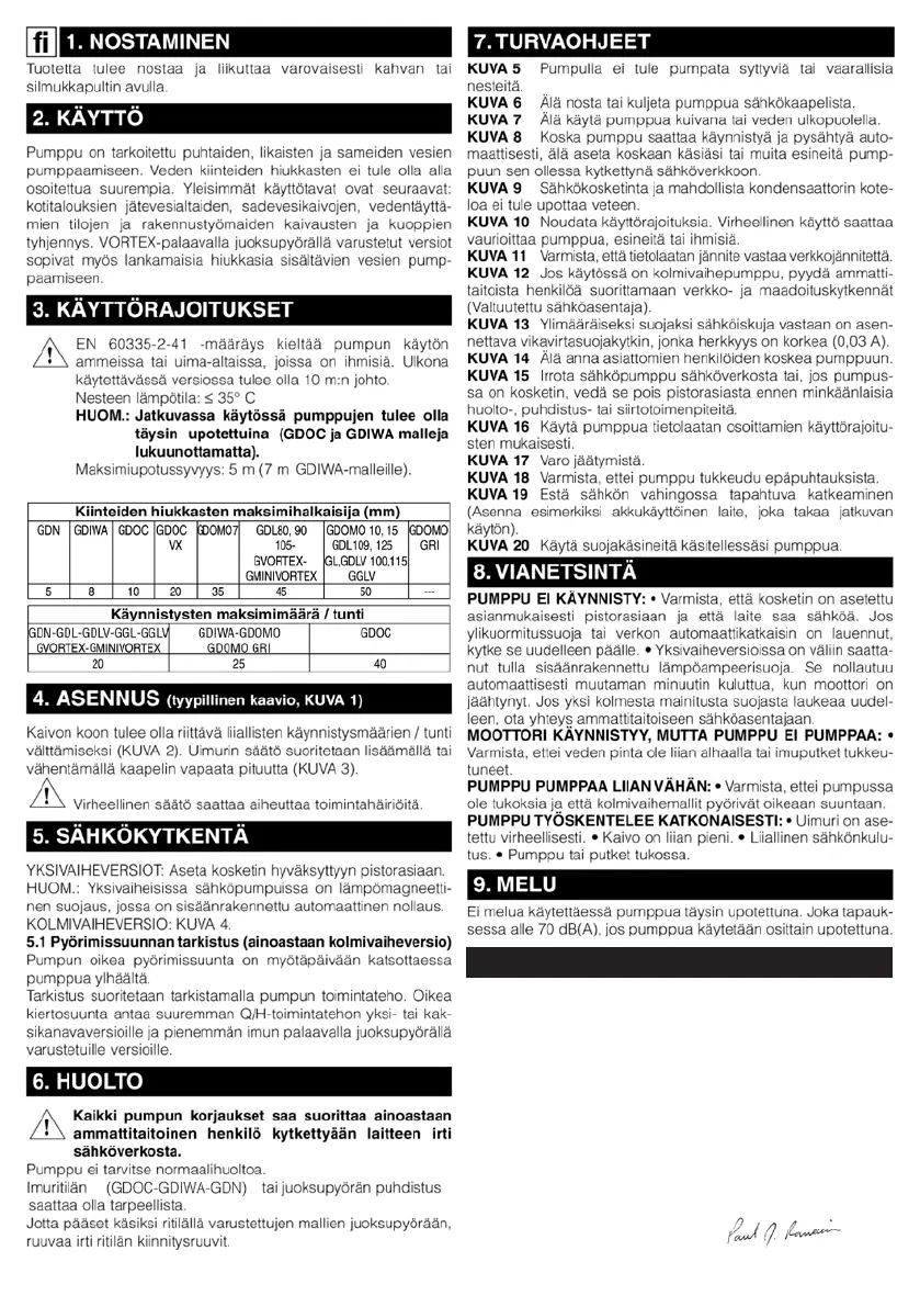 SÄHKÖPUMPPU (KS. ENSIMMÄISELLÄ SIVULLA OLEVAA TARRAA)