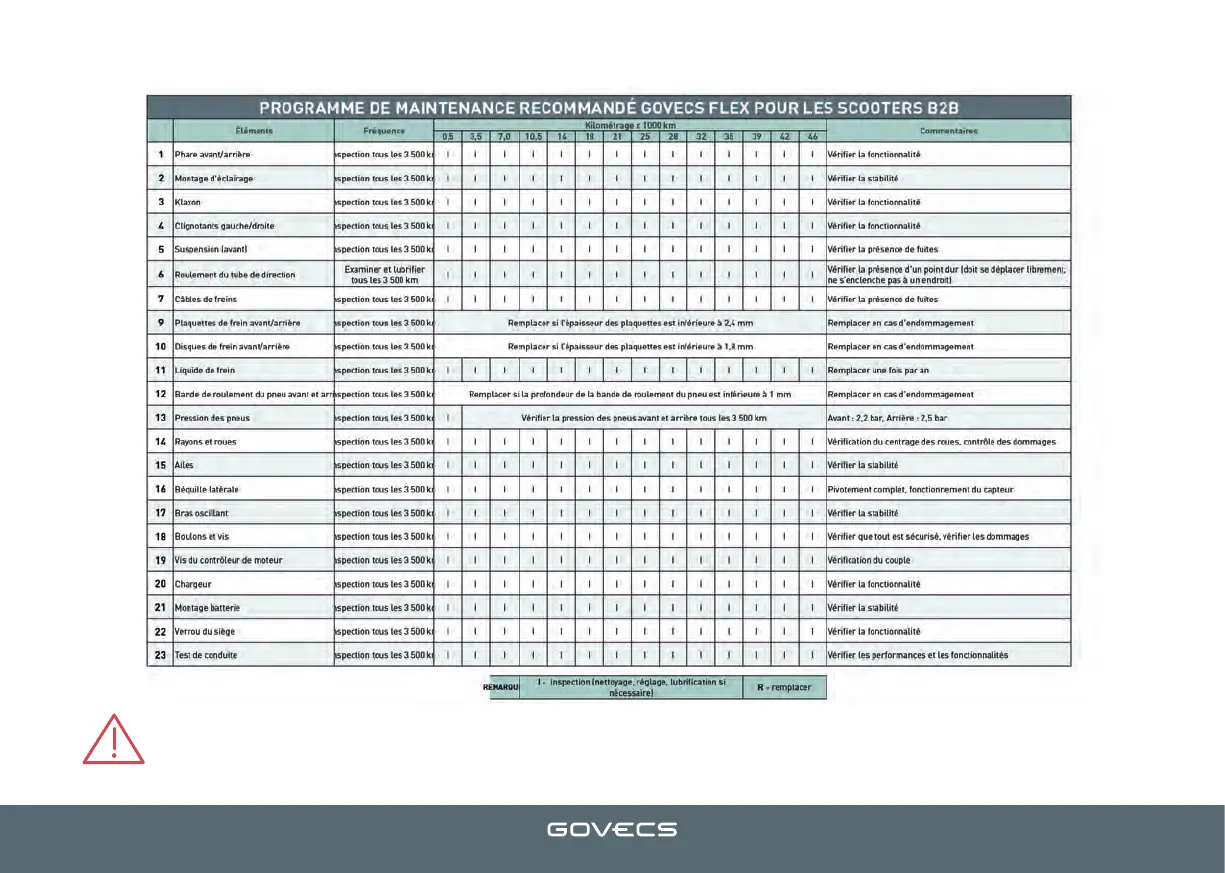 PROGRAMME DE MAINTENANCE  VÉHICULES B2B