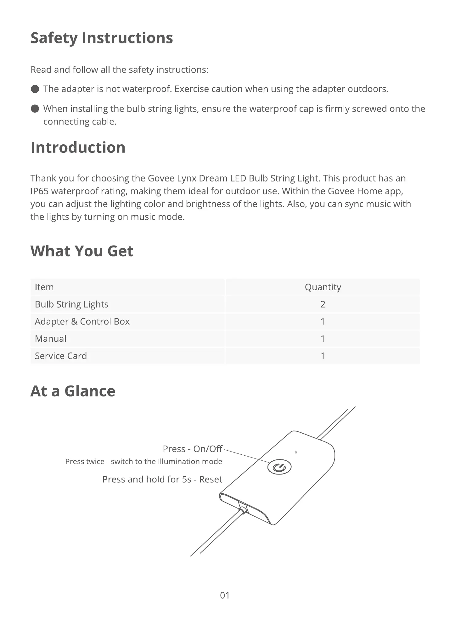 Thank you for choosing the Govee Lynx Dream LED Bulb String Light. This product has an