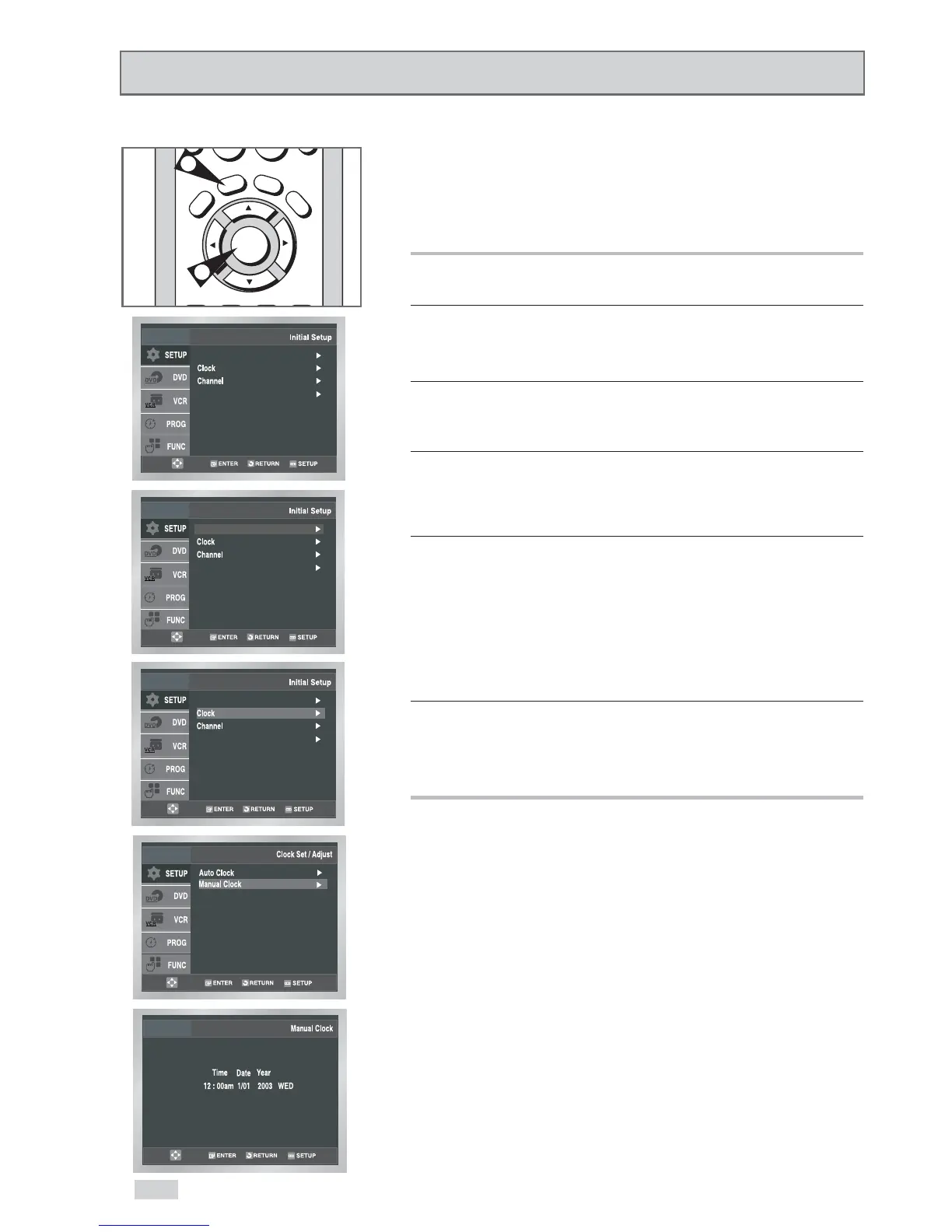 If Auto Setup fails to set the DVD+VCR’s internal clock by locating