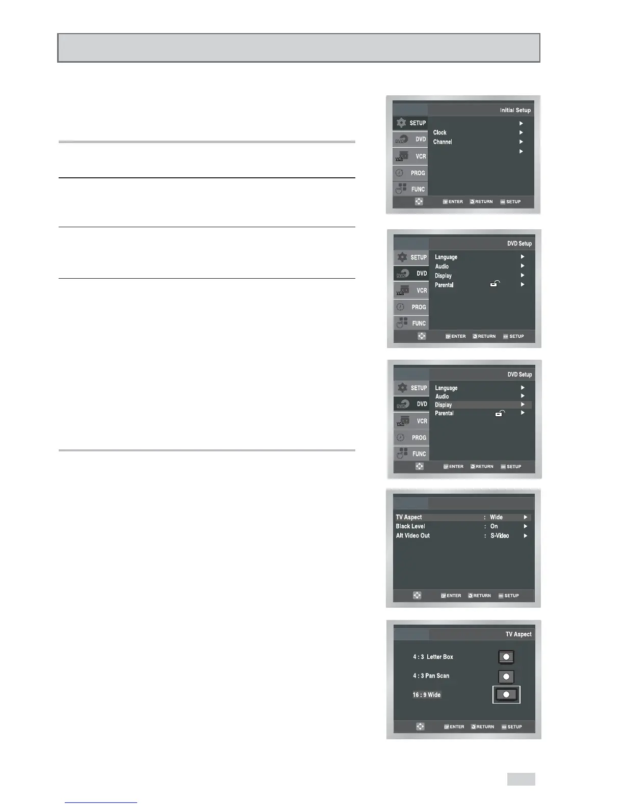 Set the aspect ratio (length x width) of your TV screen so the DVD