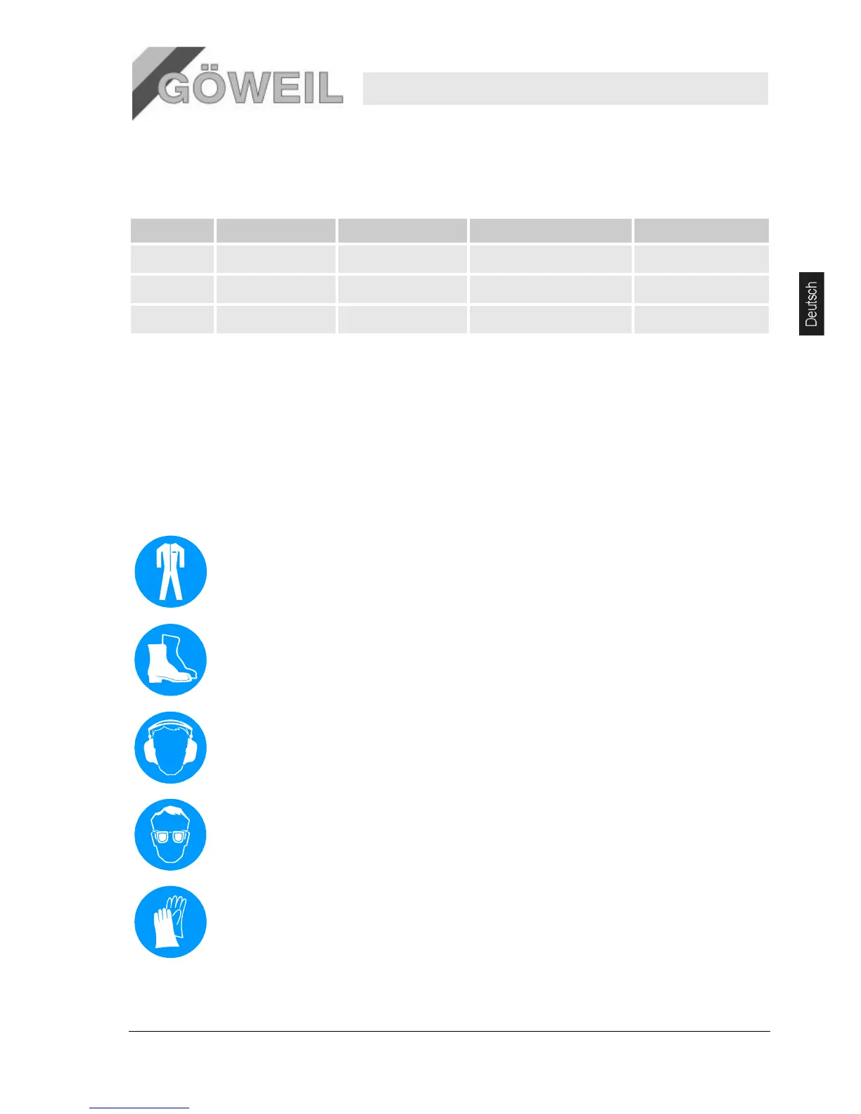 Die für die jeweilige Arbeit notwendige Schutzausrüstung während der Arbeit stets tragen.