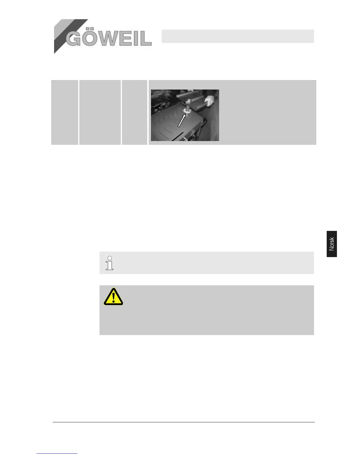 1. Alle tidligere løste skruforbindelser kontrolleres at de sitter godt fast.