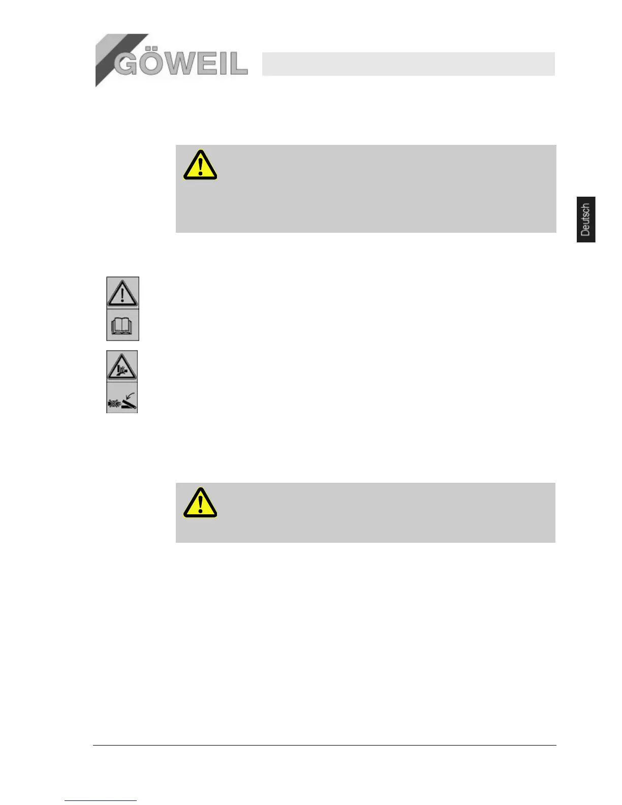 Niemals in den Quetschgefahrenbereich greifen, solange sich dort Teile bewegen können.