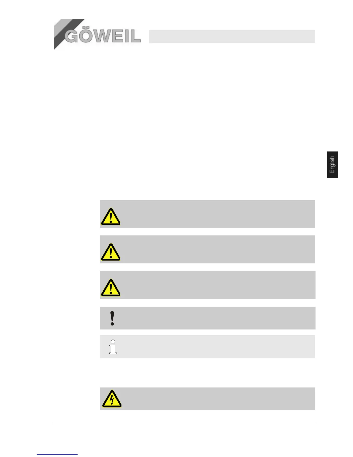 … marks hazards caused by electric current. Failure to observe the safety information may
