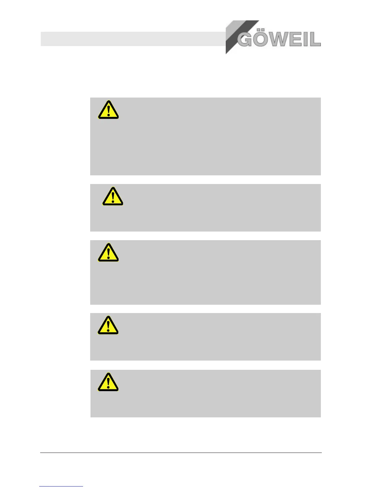 Follow the safety information listed herein as well as the warnings contained in the following chapters of