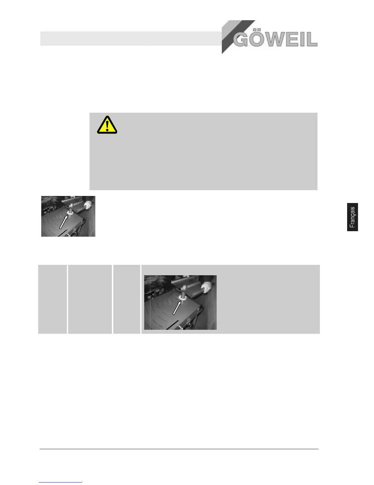 vérifier le bon serrage de tous les vissages desserrés auparavant ;