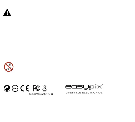 De camera is niet geschikt voor kinderen onder de 3 jaar vanwege het risico van verstikking.