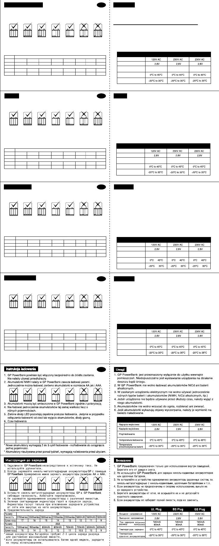 2. Ikke bruk GP PowerBank til å lade NiCD eller Alkaliske batterier.