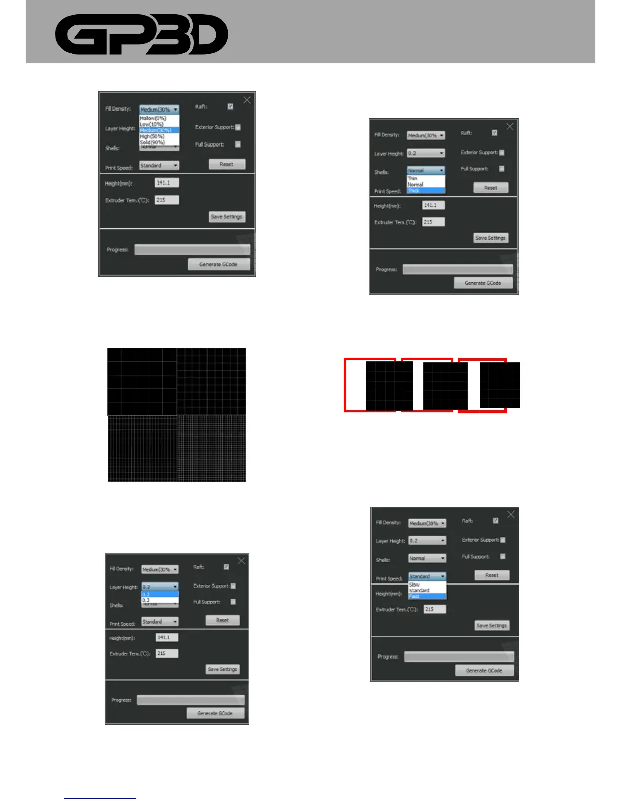 4.1.9.4 Different filling densities will affect the printing time. The greater