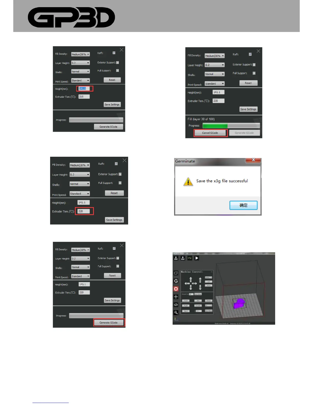 4.1.9.17 After the above parameters are set, click “Generate GCode”.