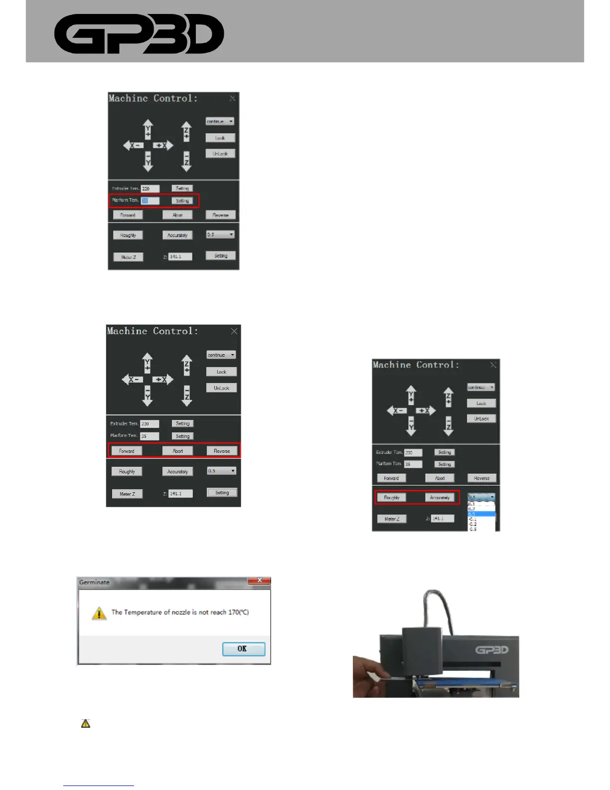 GP3D Root, which is equal to clicking “Accurately”, Z-axis moves 0.5mm
