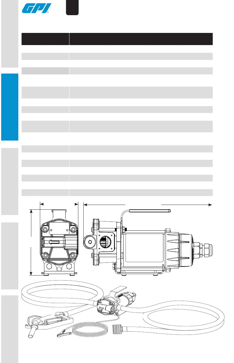 Hauteur d’aspiration Jusqu’à5,5pi(1,7m)