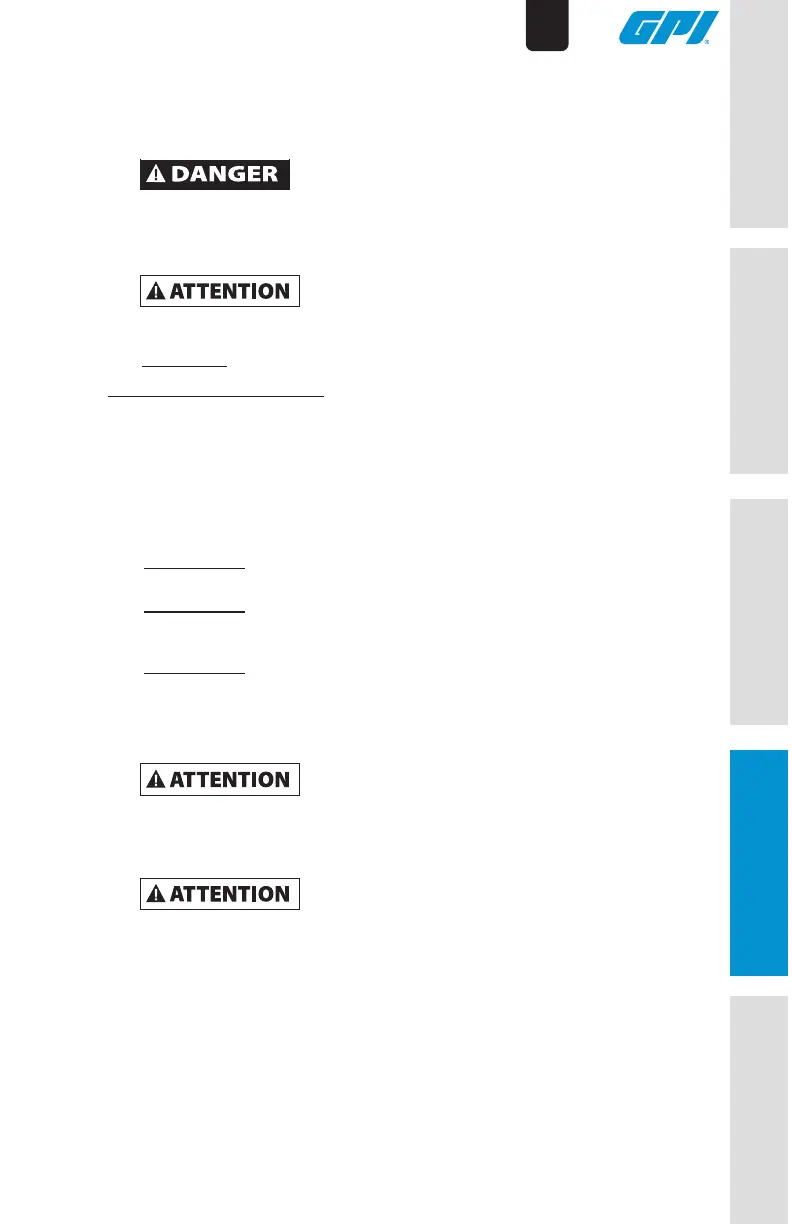 état et que les connexions sont serrées. Si endommagés, remplacez les tuyaux avant