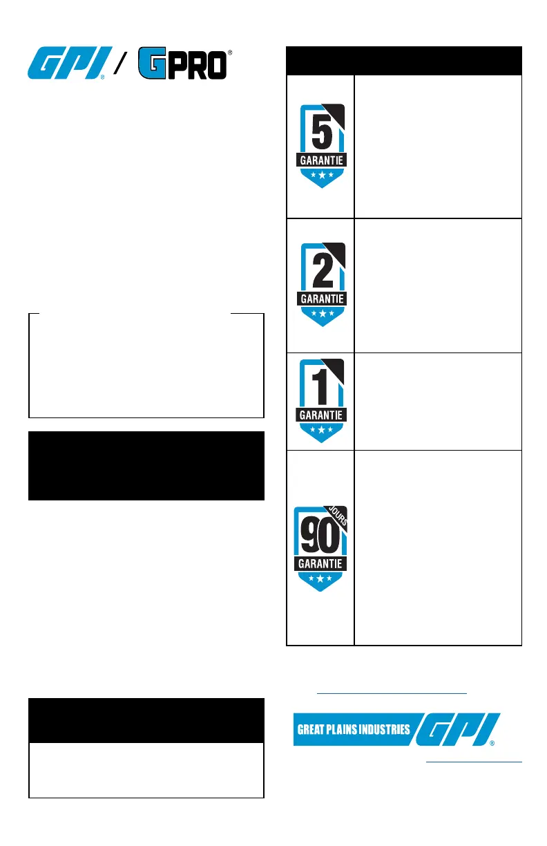 Visitez greatplainsindustries.com/register-your-product