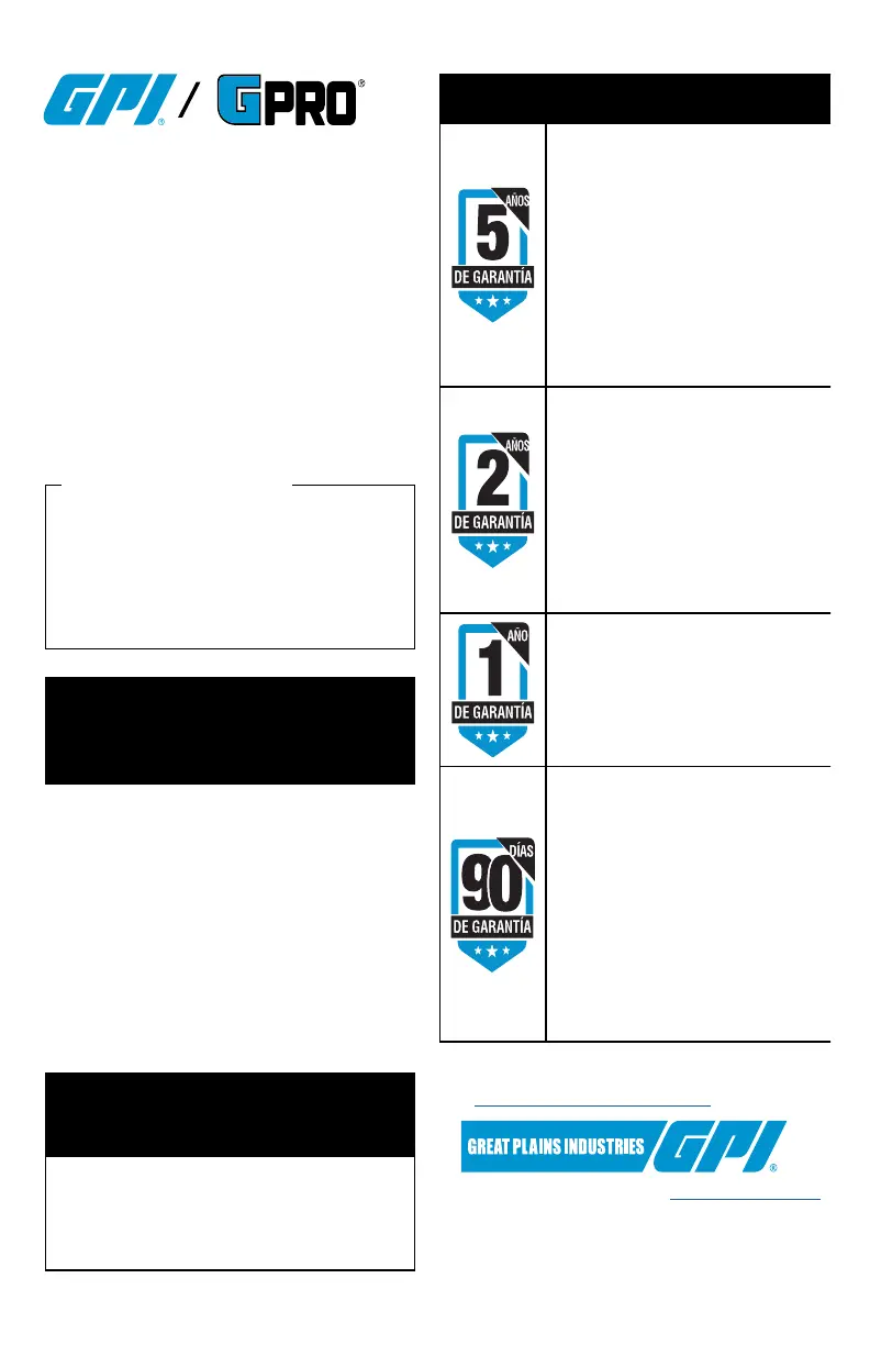 responsabilidad del cliente.Great Plains Industries, Inc. devolverá el producto