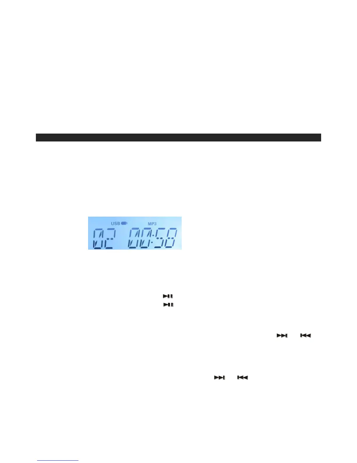 iii. The Display will show " NO FILE " if there are no MP3 files on the USB