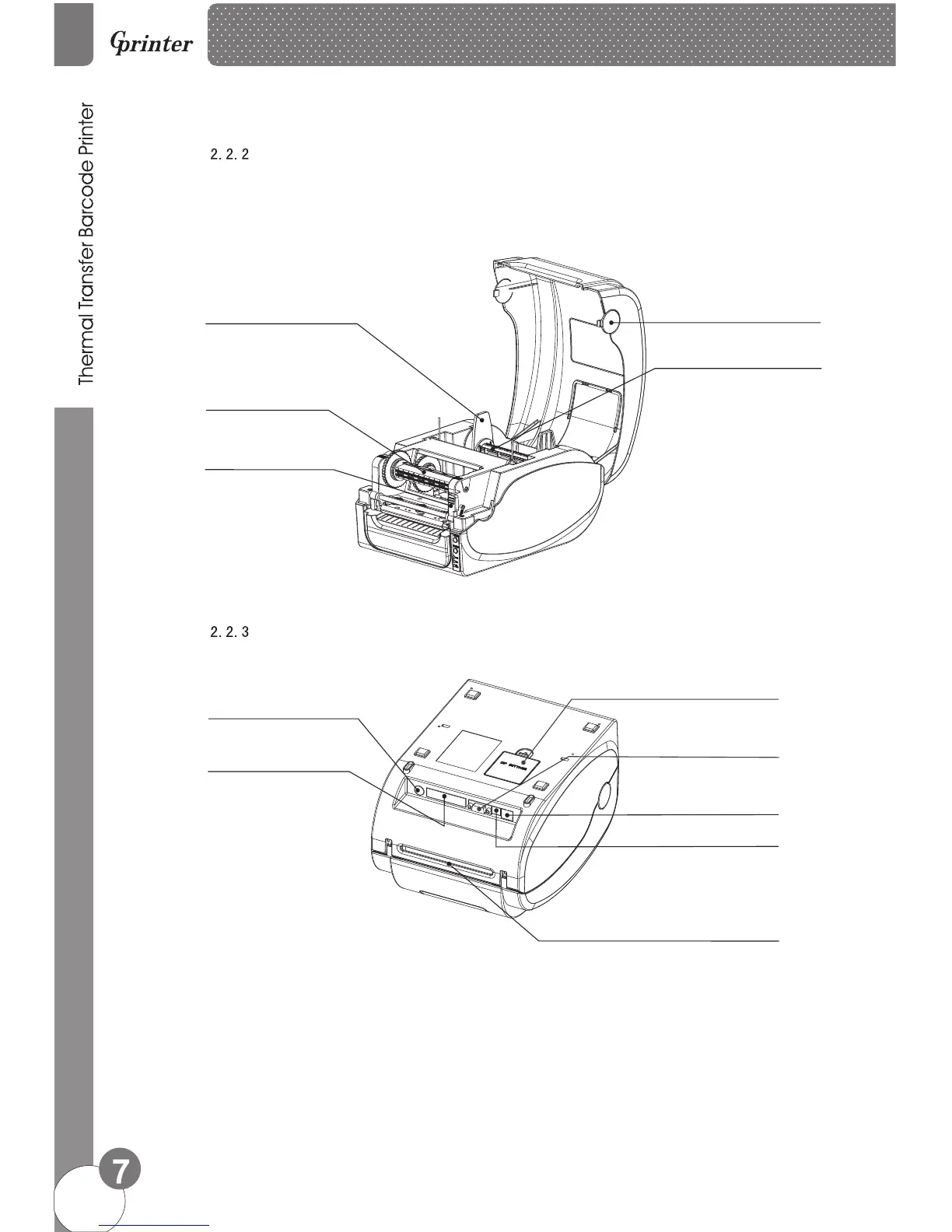GPRINTER GP-1124T - Internal and Bottom Components; 2.2.2 Internal Components; 2.2.3 Bottom Components