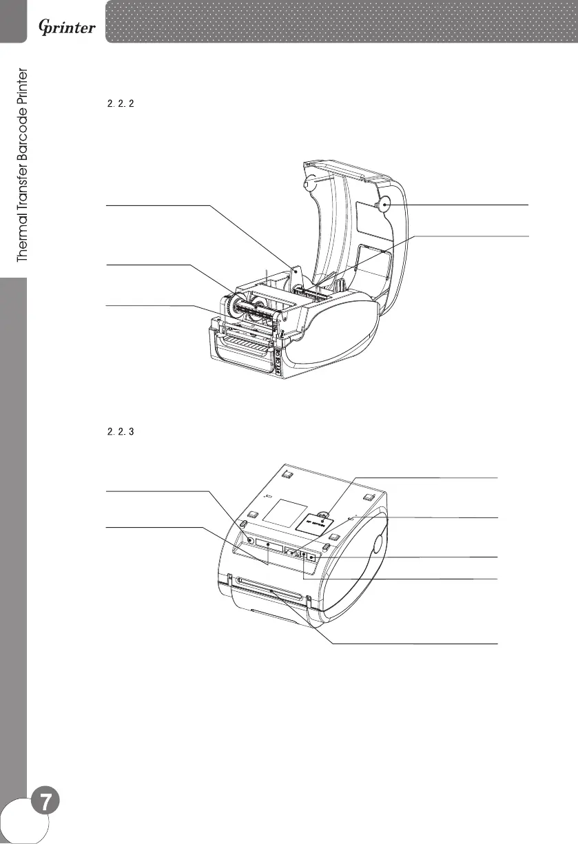 Note: Picture showing printer port is for GP-1125T, GP-1135T.