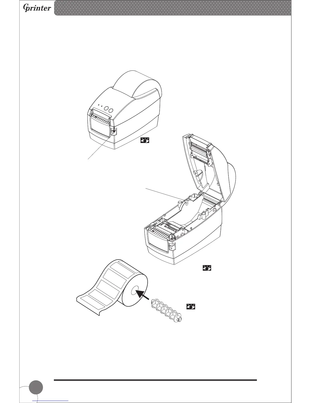 (1) Insert the paper roll spindle into paper roll, and put it into printer hollow, then fix it