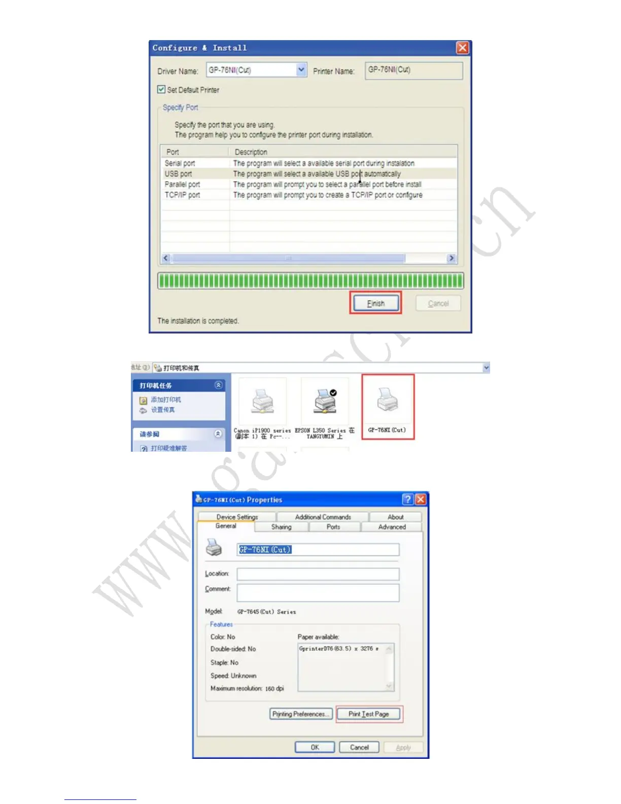 3.3 Driver installation finished, Click 【start】-【device and printer】, driver of 76NI(cut)