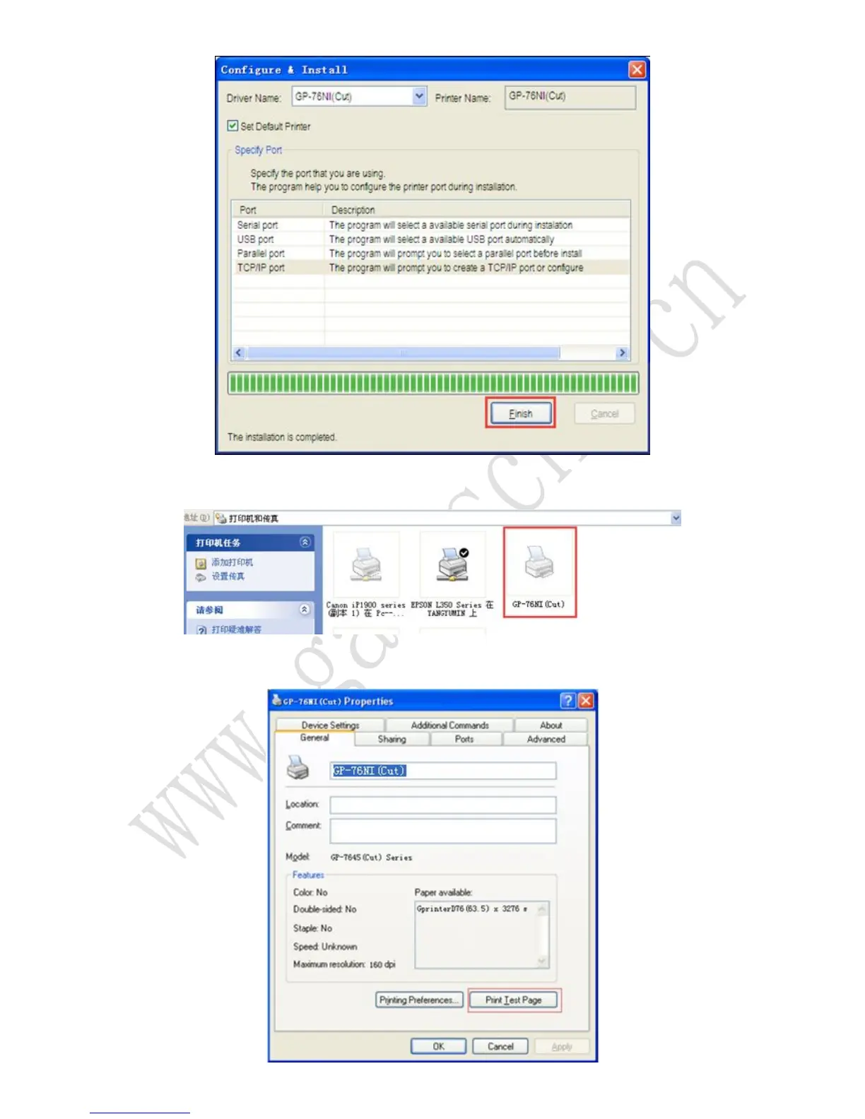 “Print Test Page” button and check printing status. Proper installation of the driver is indicated if