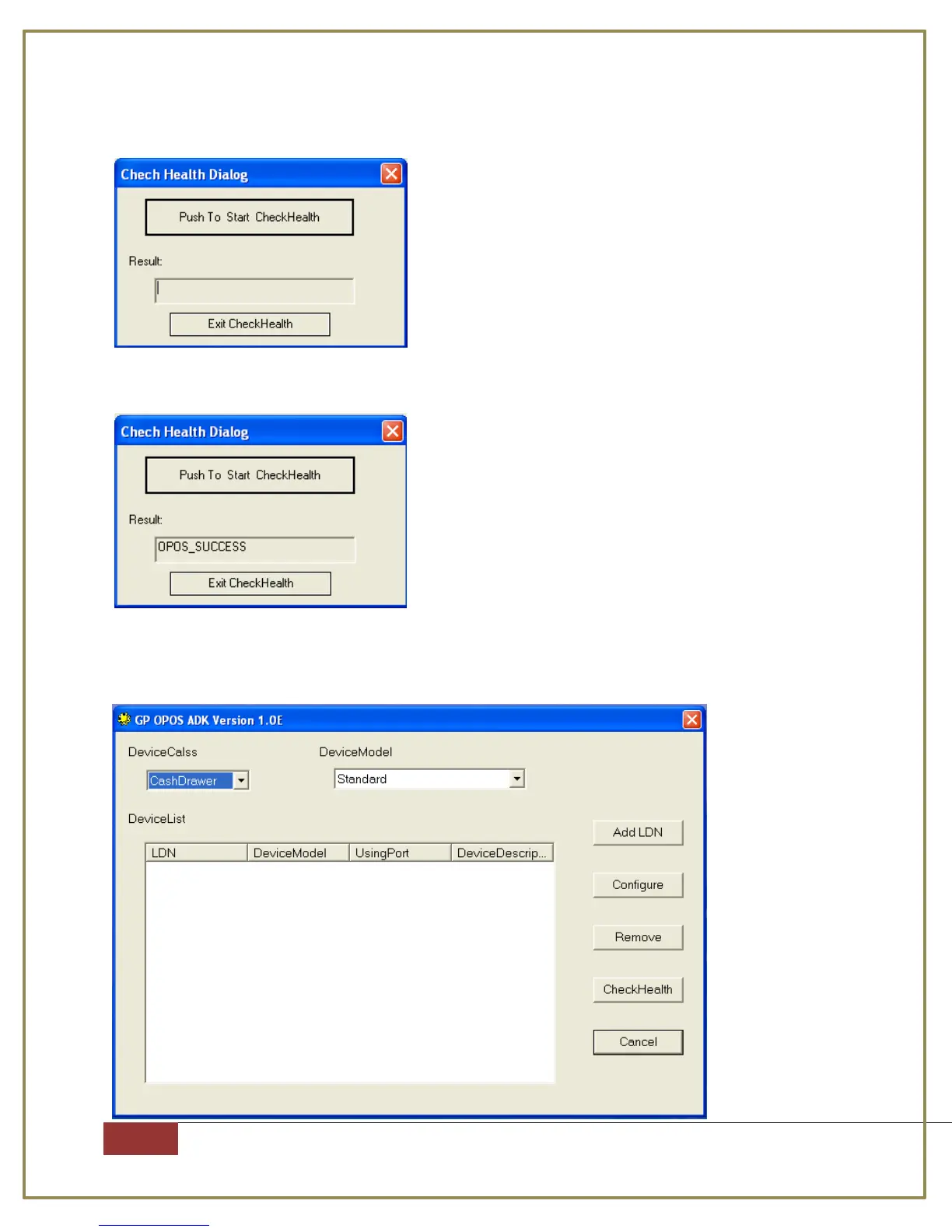 Step 11: Press “Push To Start CheckHealth”, you should get OPOS_SUCESS