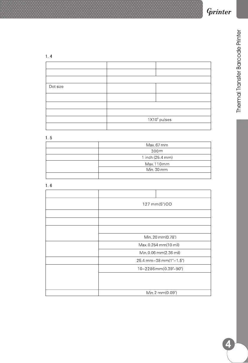 203dots/inch(8dots/mm) 300dots/inch(12dots/mm)