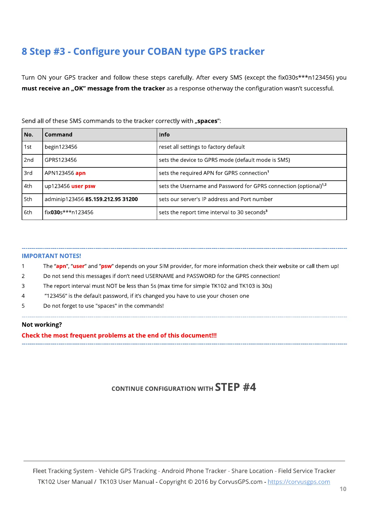 GPS Tracker TK103-B - Step #3 - Configure your COBAN type GPS tracker