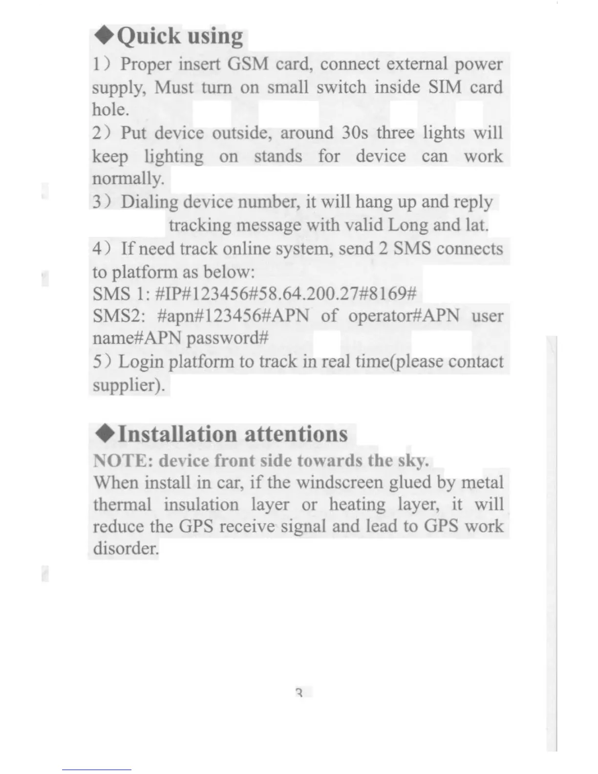 GPS TK06A - Quick Usage Guide; Installation Cautions